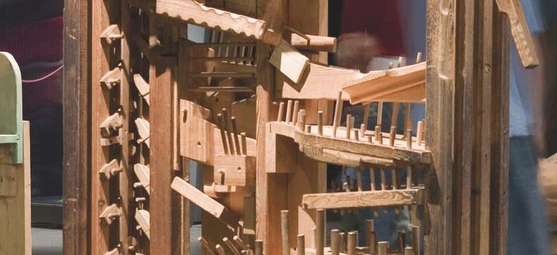 Avec le titre "Machines à rêver", Pierre Andrès s’installe à Meymac avec ses « machines » de bois évolutives. Ses sculptures vibrent au son de la boule de buis et s’animent dès qu’un visiteur attentif se prend au plaisir de jouer avec.