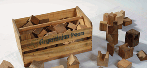 Des cubes à forme de parallélépipède et de pyramide se prêtent à toutes sortes d’architectures, maisons, ponts châteaux, églises.... Certaines pièces sont creusées d’une rigole pentue, où l’on peut faire circuler une boule sur un parcours visible ou caché. [1]