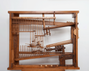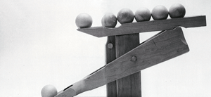 ... en déposant des boules sur la goulotte supérieure, l’enfant met en jeu un système ingénieux de levier basculant, associé à un poussoir ; les boules roulent, descendent, s’échappent, s’éparpillent... et c’est formidablement amusant !